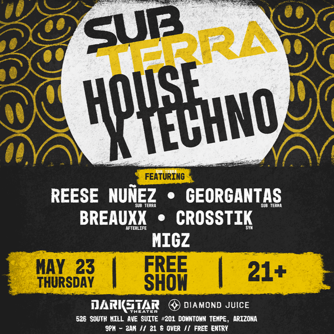 Bi-weekly House X Techno event hosted by Sub Terra Events