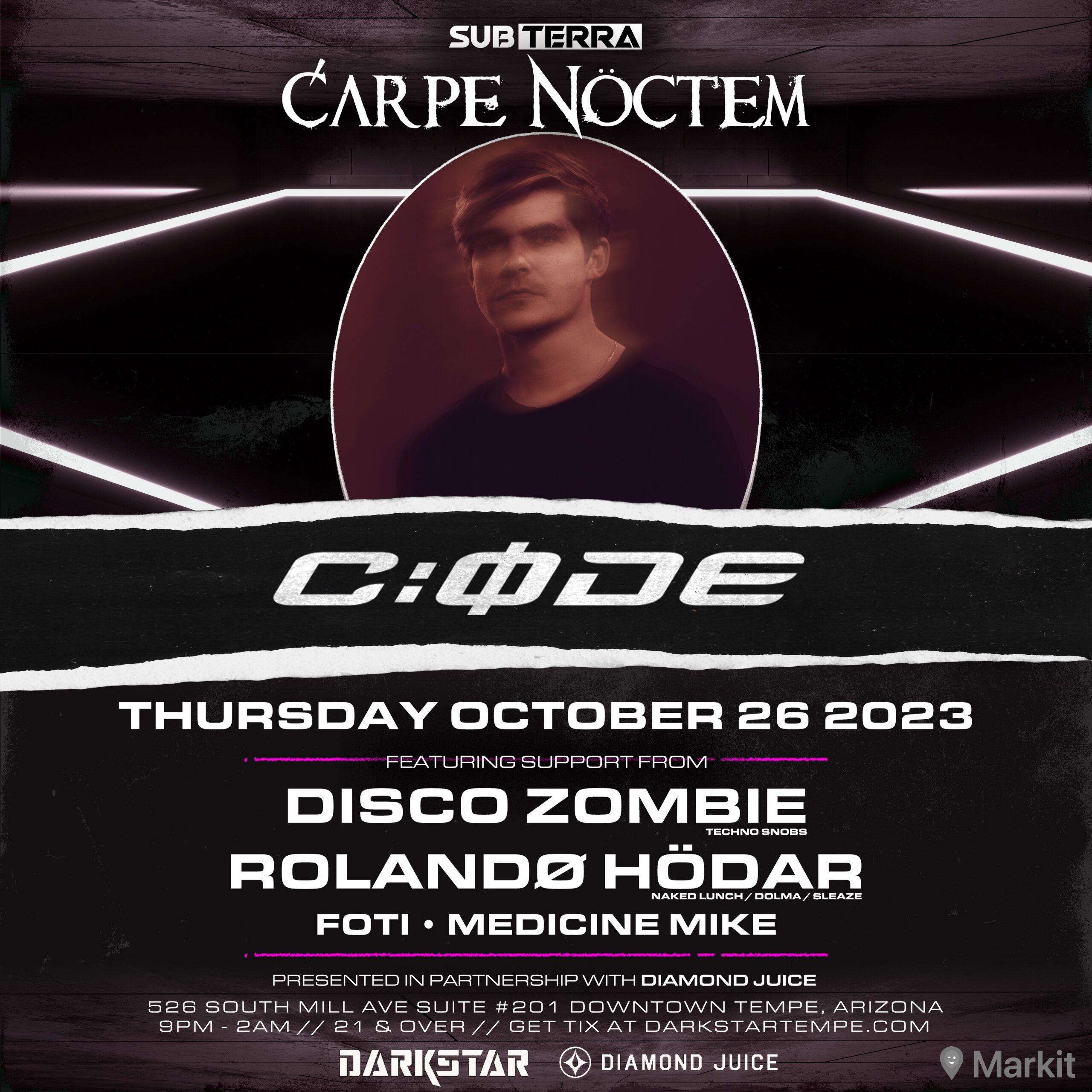 DarkStar Tempe 526 s. Mill Ave, Tempe, AZ, United StatesC:ØDE is a Hard Techno producer/DJ located in Orlando, Florida.